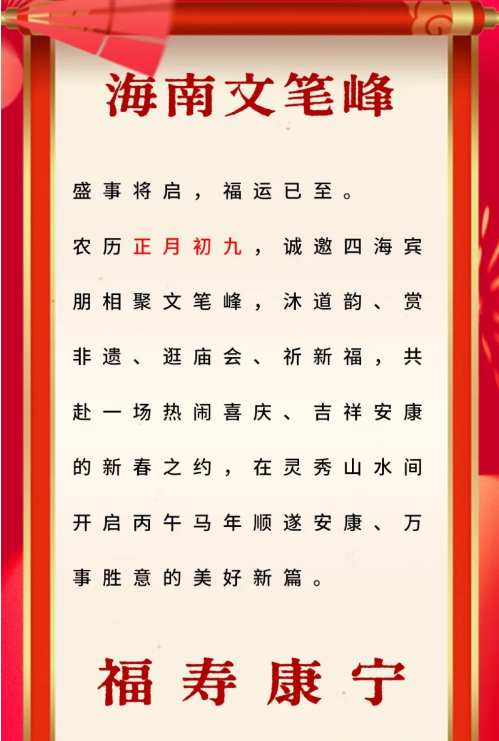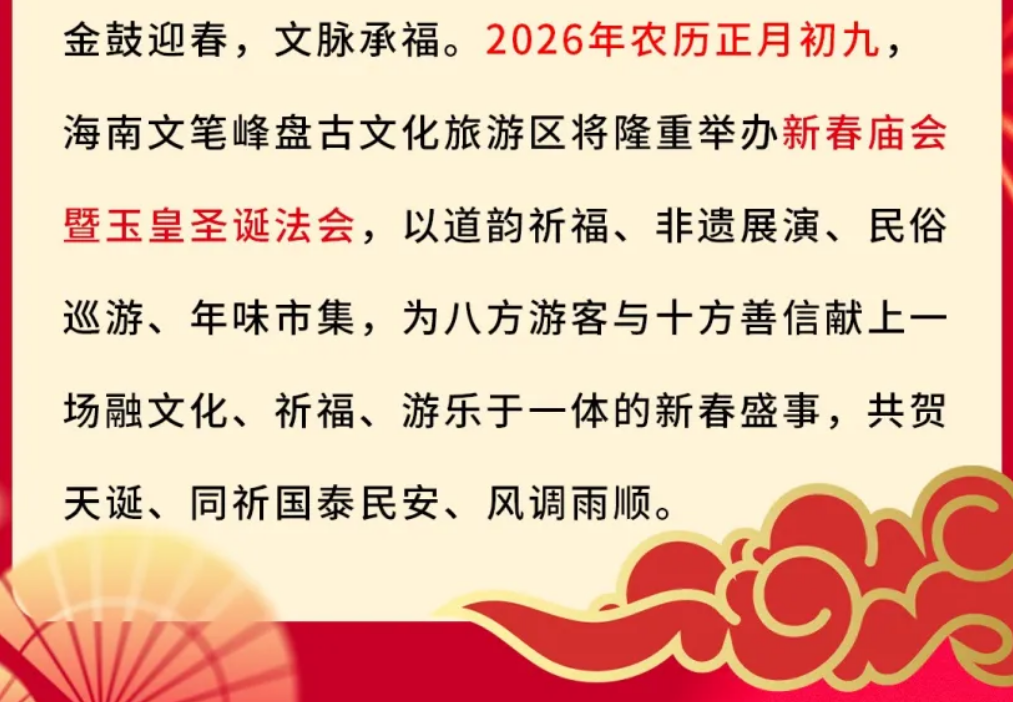 海南文笔峰|2026文笔峰正月初九新春庙会暨玉皇会即将启幕