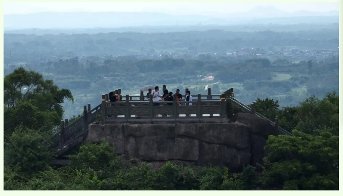 沿着步道登顶文笔峰,定安平原的美景尽收眼底,满目青翠,身心俱畅。