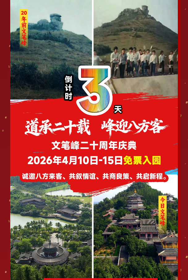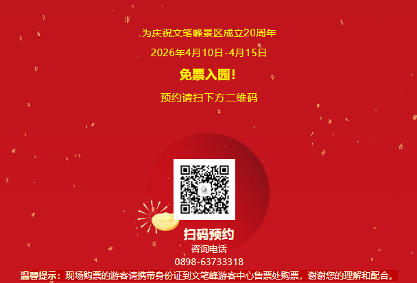 值此二十周年华诞之际,海南文笔峰景区诚邀您拨冗莅临,